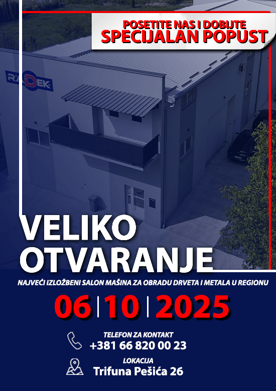 RADEK je renomirana kompanija za prodaju i servis visokokvalitetnih mašina za obradu drveta i metala, koje se proizvode po strogim merama kvaliteta i izdržljivosti. Sastavljen od tima menadžera i servisera sa dugogodišnjim iskustvom, cilj RADEK tima je efikasno plasiranje proizvoda pouzdanog i vrhunskog kvaliteta na tržište.