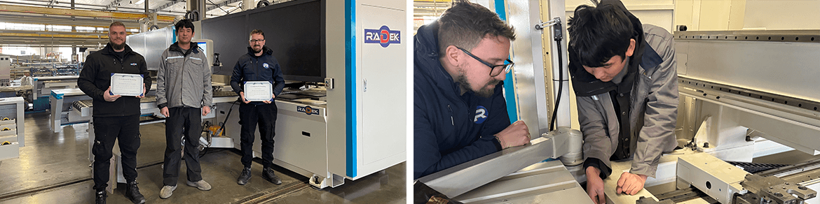 Kvalitet jedne mašine ne meri se samo po njenim performansama, već i po podršci koja stoji iza nje. Zato u RADEK-u posvećujemo posebnu pažnju servisu i tehničkoj podršci. Naš servisni tim je obučen direktno u fabrici i ima praktično iskustvo sa realnim mašinama, što omogućava duboko razumevanje sistema – ne samo teoretski, već i u praksi. To rezultira bržom dijagnostikom, efikasnijim rešavanjem problema i minimalnim zastojem u proizvodnji, što je od ključnog značaja za svakog ozbiljnog proizvođača.